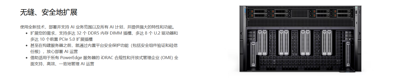 支持最多 12 个 PCle 标准插槽;支持8个双宽全高全长GPU+4 个 PCle 扩展卡
